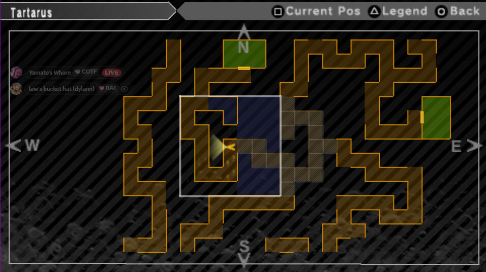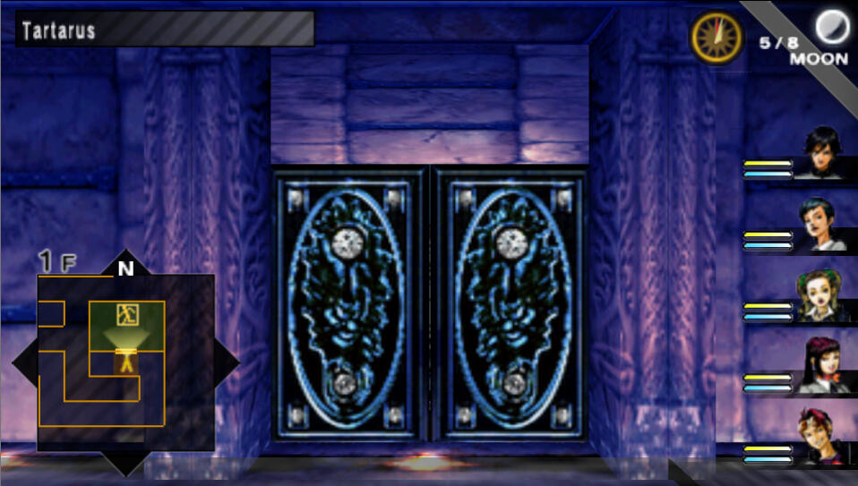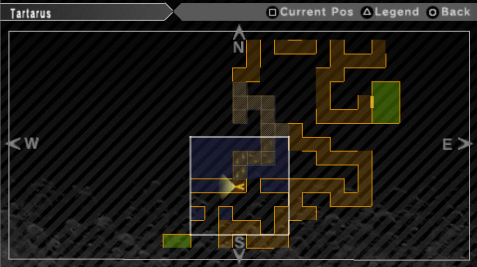 2. Healing spells are going to be more useful to you than healing items in this dungeon, generally speaking.When you're ready to suffer, enter the door.1F: Obviously, head straight to the door ahead. You'll witness a cutscene in the room, and you'll be tasked with the choice of which candle to blow out. The left one will remove your MC's ability to use his persona and the right one will do the same for Yukino. Do what you wish, but it would probably be better to do Yukino. Don't worry, you'll be able to get it back. Exit the room.Be very careful with these battles, many of them use Mudo spells which are insta-kill attacks. Head to the southeast corner and take that last path north. This path is pretty easy to follow, the forks are easy to see. Keep following it until you see a door, and go through it. You'll walk over a tile that does damage to you. From here, take the south side of the fork and keep south at the next fork too. You'll be lead to the stairs leading up.2F: From the stairs, head north until you hit an intersection that goes four ways. Head east. This will go take you to fork where you can see a room. Head inside the room to find the Tartarus Entrance.