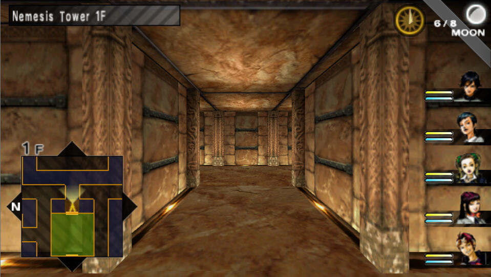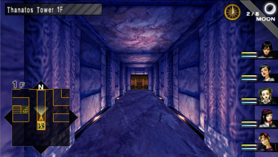 Hard: Reach the 8F hall after 60 minutes.Keep in mind, the timer here is the same as last time, it's only counting your first-person exploration and not battle and menu screens.Enter when you're ready.1F: Upon entering there is a room straight ahead where you'll see a cutscene. After the cutscene, exit the other and of the room and head south down the linear path to the stairs.2F: Follow the linear path, passing the few small dead ends, and when you hit a fork, take the southwest path. As you follow it, you'll find a Weapon Shop and an Armor Shop where you can upgrade some gear if you like. Keep heading north to find the stairs leading up.3F: From the top of the stairs you'll immediately see a room on your left, this is a Velvet Room, if you need it. Otherwise, continue straight to the room ahead for a cutscene.After the cutscene, you have a decision. Unfortunately, you need the Mirror Shard, so you need to head out the door on the top right. Follow the path right to the stairs heading up.4F: On this floor, there are darkened sections of the map that you'll need to cross. If you played the SEBEC version of the game, you'll remember this. Head north from the stairs, following this path until it connect to the darkened area. Your directions are as follows:East, East, South, East, East, South, South, East, South, South.It should look like this: