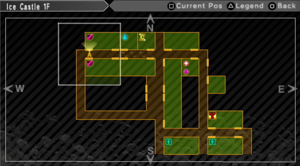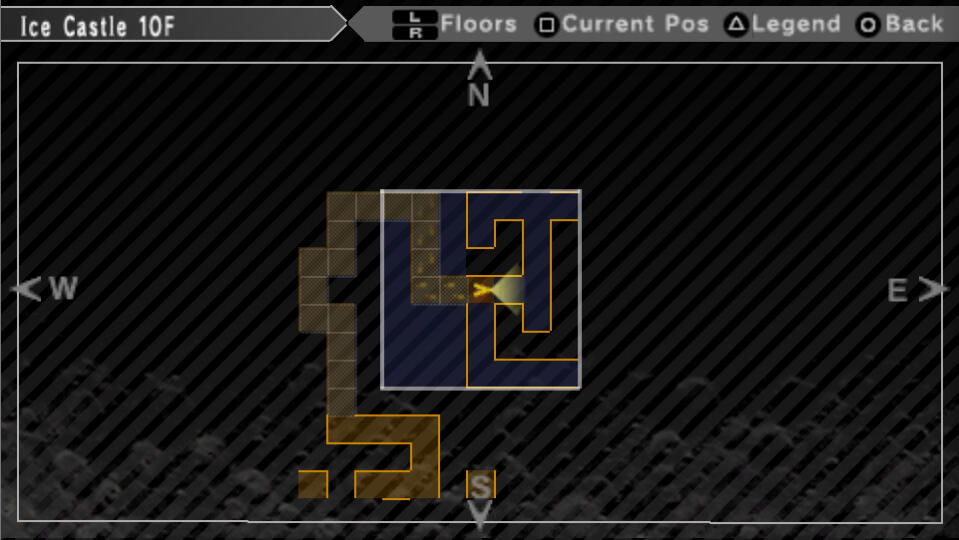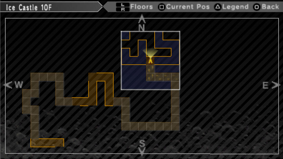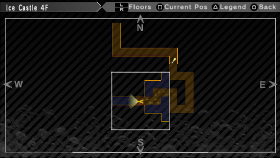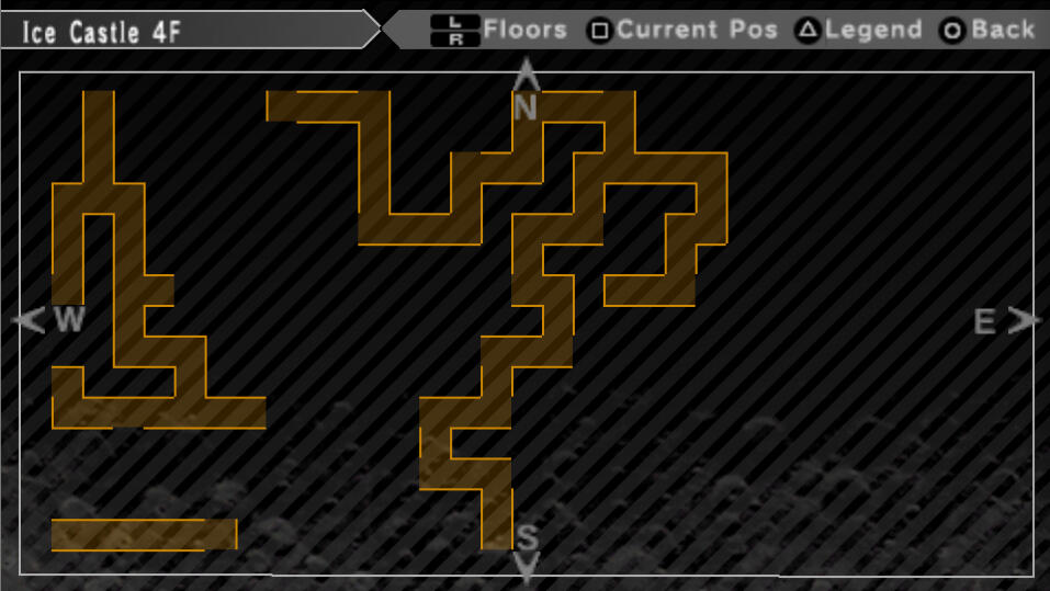 You should now be staring some stairs in the face, so go ahead and head up.5F: From the stairs, head south, and follow the linear path as it takes you west and north again. Toward the northwest corner of the floor you'll find a fork, take the north path and follow this east until you reach a dead end. This dead end will drop you down to the floor below.4F: Follow the path to your next dead and you'll drop down again.3F: Again, the same shit.2F: Follow the path to the east, and then as far north as you can go before it makes you u-turn. Follow that u-turn south of course, until you find a staircase down to the bottom floor.1F: Head west from the stairs and follow the linear path until you find a room. Enter the room for a cutscene and the Mirror Shard. Back track to the stairs you started at and head east this time. Follow the path to the far east, and then far north. Now head to the far west while keeping north until you're in the northwest corner. South from here, and you'll finally find a staircase leading up.2F: This is a pretty linear path, just head south at the first fork and east at the second and you'll find the stairs leading up.3F: Head west and all the way south, and then west around the little loop until you reach a dead end. This will drop you down nearby that same Weapon Shop and Armor Shop you encountered earlier.2F: Buy things if you still need to, then head to back to the staircase north of those shops.3F: Straight ahead from the stairs to reach the Torture Chamber once again. Leave through the left door this time, obviously. This is another very linear hallway, follow it until you reach the stairs leading up.4F: This short hall leads to that darkened area again. There are two entrances you can use, the first is a dead end so use the second one. Your directions are as follows:East, East, South, East, East, North, North, East, North, North, North.It should look like this: